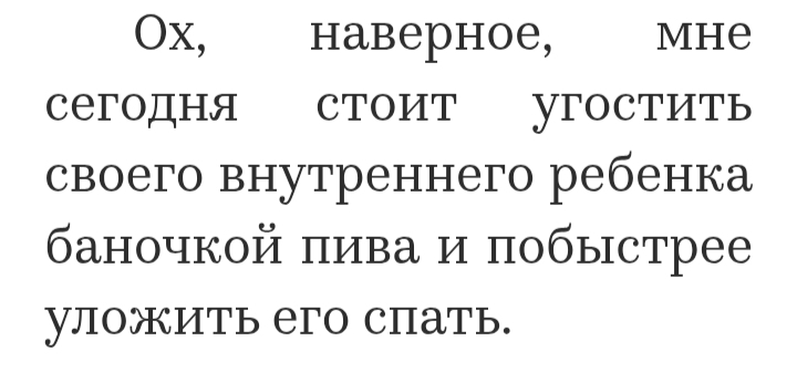 К главной идее придраться мы не можем, а со многим даже согласны. Не то чтобы никогда не было заметно, как культ продуктивности и чувство вины за «ничегонеделание» уже давно захватило мир и заразило всех вокруг. Так что герой книги поступил так, как мало кто решился бы сделать: уволился, чтобы просыпаться после обеда и пить спокойно пиво. Если вы начали завидовать, не нужно этого делать: дальше он пожалуется, что из-за этого растолстел с пивным животом — как неожиданно!